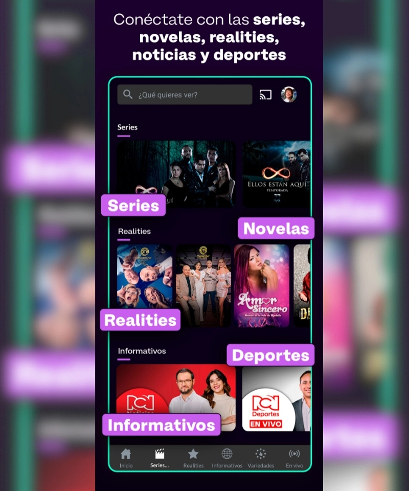 La app de Canal RCN reúne una amplia oferta de entretenimiento: capítulos completos de novelas y series, realities, programas en vivo, contenido exclusivo y mucho más.