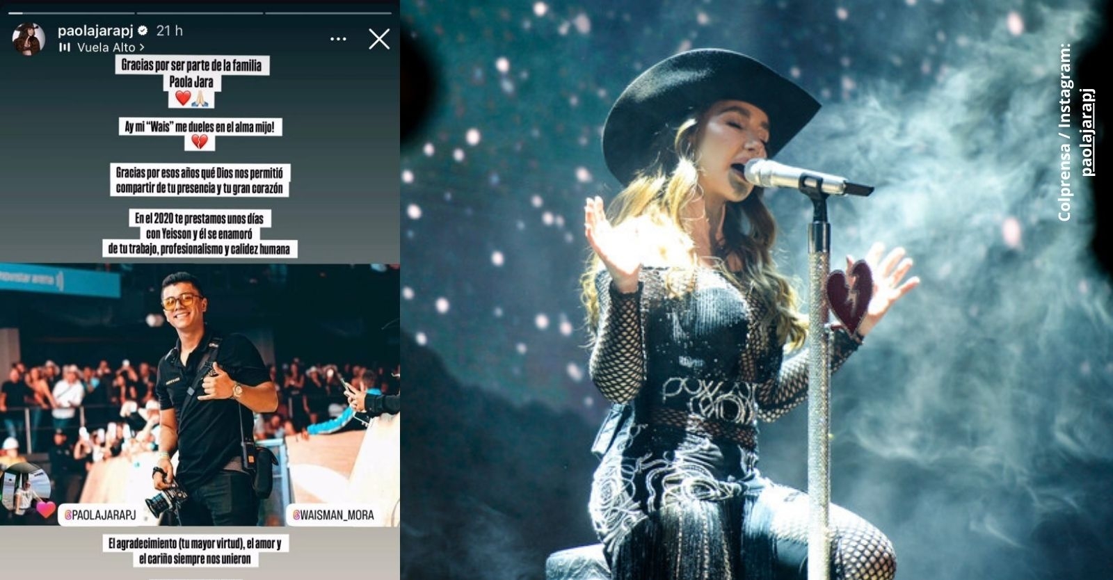 Paola Jara envió un conmovedor mensaje a Waisman Mora, fotógrafo de Yeison Jiménez, quien falleció junto al cantante en el trágico accidente aéreo que enluta a Colombia.